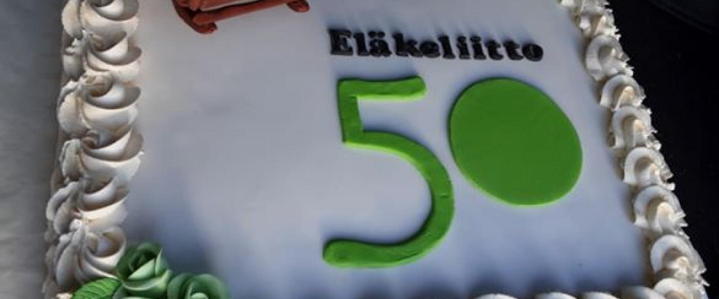 Liedon yhdistys Urjalan yhdistyksen 50v kakku Eläkeliiton Varpaisjärven yhdistyksen juhlakakku Eläkeliitto 50v. Ypäjän yhdistys Muhoksen yhdistys mukana juhlassa Lisää kakkukuvia Eläkeliiton Facebook-kanavalla