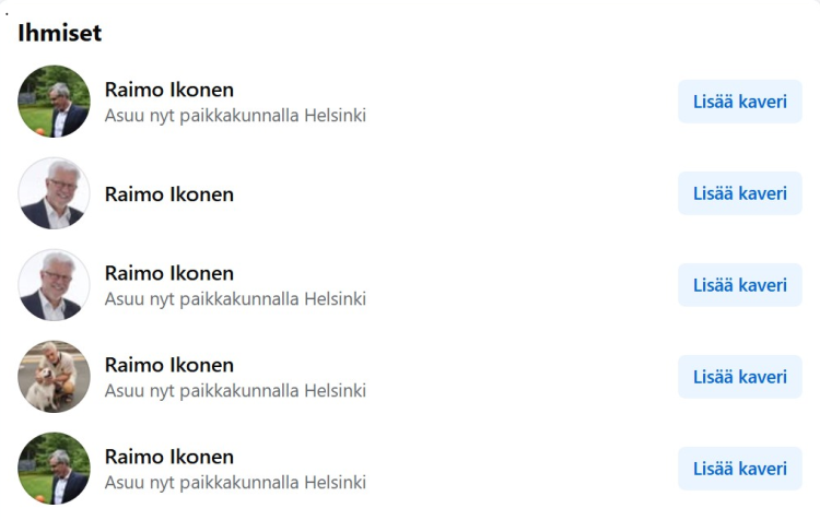 Viime aikoina Facebookissa ja muissa somekanavissa on havaittu huijausyrityksiä, joissa on käytetty hyväksi Eläkeliiton puheenjohtaja Raimo Ikosen nimeä. Huijari on luonut useita valetilejä nimellä Raimo Ikonen ja houkutellut käyttäjiä seuraamaan Facebook-tiliään, ilmeisesti tarkoituksenaan tietojenkalastelu ja käyttäjän tilin kaappaus.