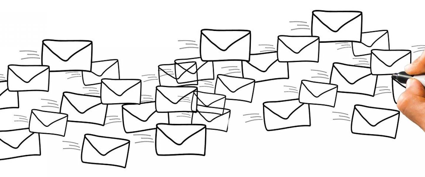 Kirjekuoria piirroskuva kynä ja käsi