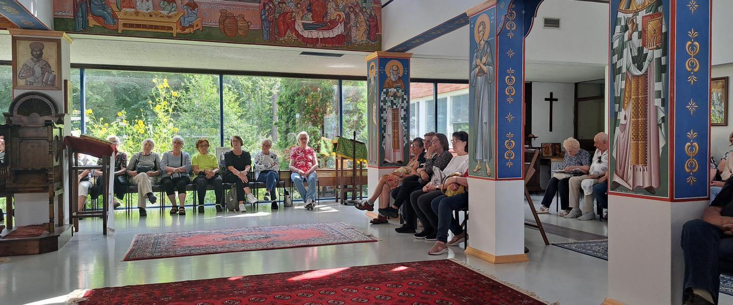 Kartanosta lähdimme viimeiseen matkakohteeseemme, Athos säätiön luostarikeskukseen, Panagiaan. Saimme kuulla Panagian historiasta ja toiminnasta. Kirkkosali oli täynnä kauniita ikoneja, joiden edessä mieli rauhoittui. Rakennuksessa sijaitsi myös ortodoksinen kirjakauppa Filokalia, sekä pienempiä ikoninäyttelyitä. Sekä Panagia, että Porkkalan kartano olivat monille ihmetyksen aiheita, että näin lähellä Asikkalaa on upeita käyntikohteita, joista ei aiemmin ollut tietoa. Matka alkoi ja päättyi kirkollisissa merkeissä, pientä hiljentymistä arjen keskellä.
