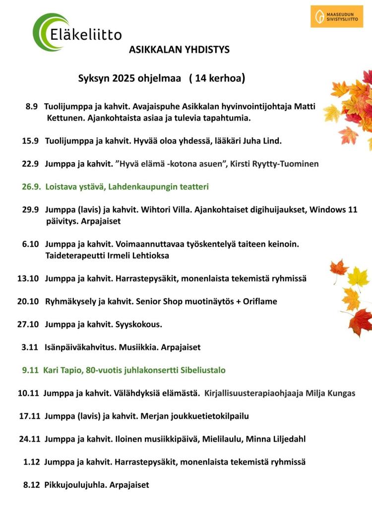 Syksyn ohjelma 2025