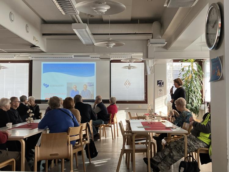 Jäsentapaamisessa 20.2.25 Tapiolan palvelukeskuksessa oli aiheena "Näkymiä omaishoitajuuteen". Alustajana oli omaistoiminnan koordinaattori Sanna Jensen Länsi-Uudenmaan omaishoitajat ry:stä (entiseltä nimeltään Espoon ja Kauniaisten Omaishoitajat ja Läheiset ry).