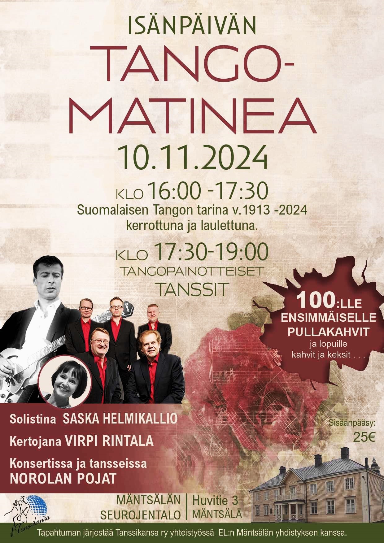 Maankuulu lauluyhtye Aikamiehet halusi konsertoida Mäntsälässä ja pyysi yhteistyökumppanikseen Eläkeliiton Mäntsälän yhdistyksen. Nyt tuo konsertti toteutuu la 18.10.25 Mäntsälän Seurojentalolla.