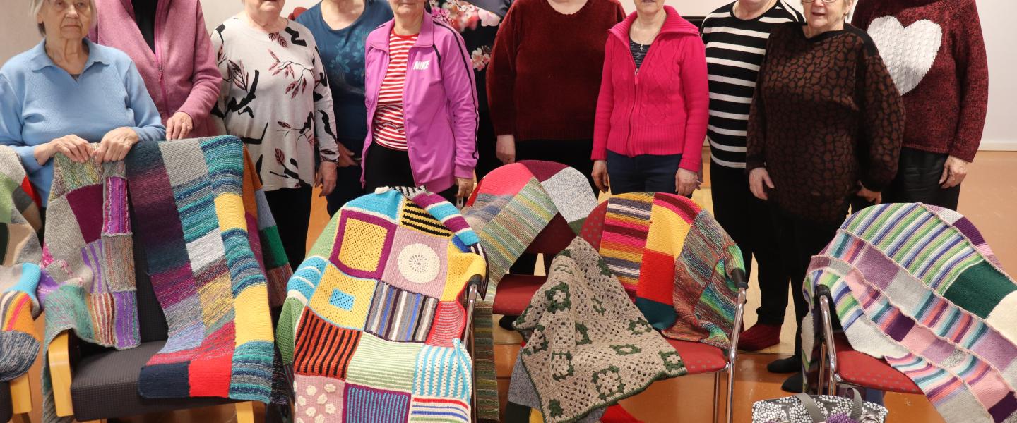 Eläkeliiton käsityökerho kutoi peitteitä Moldovaan ja Ukrainaan.