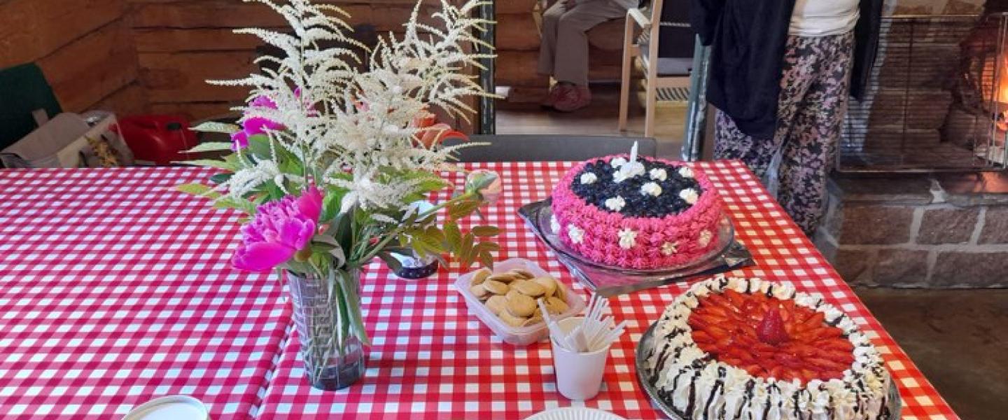 Näin juhlistettiin kakkukahveilla yhdistyksemme 50 vuotista taivalta Nastolan seurakunnan kesämajalla Metsäniemessä 13.6.2024