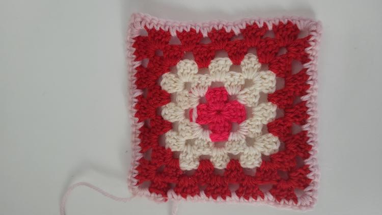Linkeistä löytyy virkkausohje, jota voi kasvattaa yhdellä kerroksella, jos oma käsiala niin vaatii. Tärkeätä on vaan se neliön lopullinen koko 11x11cm.