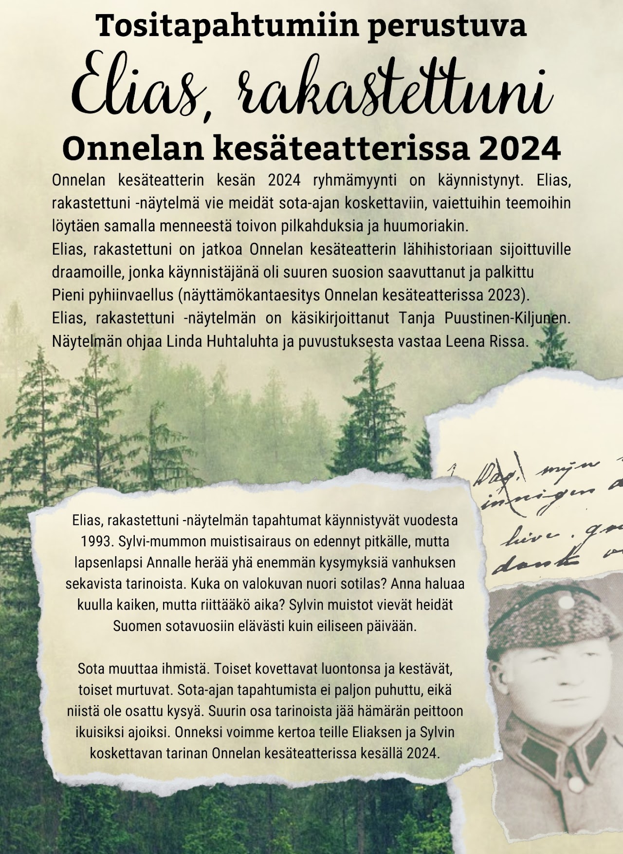 -Teatterimatka yhdistyksemme jäsenille su 20.7.2025 Onnelan kesäteatteriin Härmään, jossa esityksenä klassikkokomedia POKKA PITÄÄ näytös alkaa klo 16. Lähtö K-Marketin pihasta klo 14:30. Matkan hinta 35 € kerätään bussissa käteisenä sisältäen lipun, kyydin ja pullakahvit väliajalla. Sitovat ilmoittautumiset viimeistään 4.7.2025 Hilkka Ilomäelle 040 5716822.
