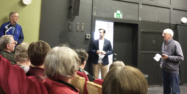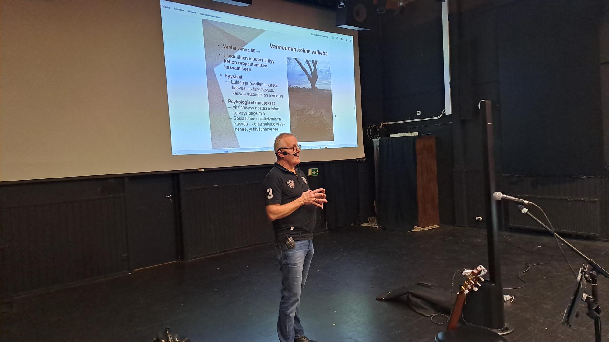 Vimpelin kunnanhallituksen ja samalla myös Lakaniemi-Pokela-Pyhälahti kyläseuran pj. Hannu Särkinen kertoi LakisAreenan historiasta ja rakennusvaiheista ja kiitti eläkeläisiä siitä valtavan arvokkaasta talkootyöstä, mitä he ovat tehneet LakisAreenan ja monen muun suurhankkeen hyväksi.