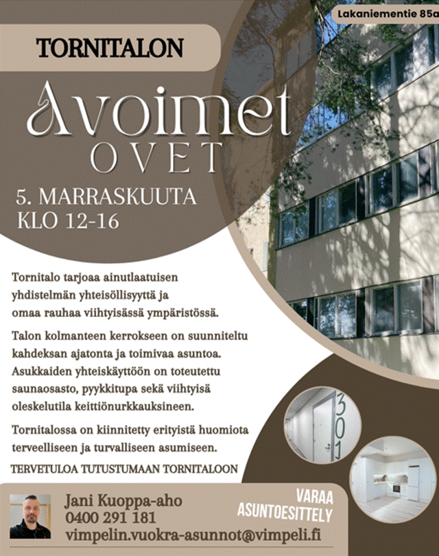 Tornitalon (Entinen Järviseudun Sairaalan) avoimet ovet 5.11.2025. Käykääpä tutustumassa.